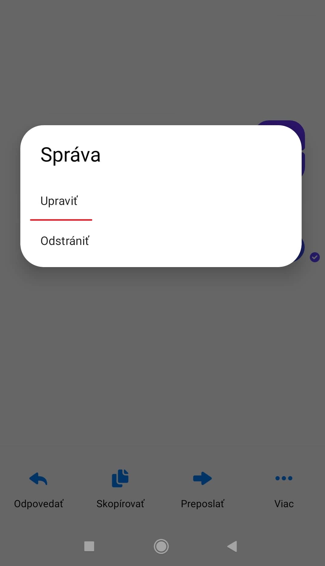 Ak chcete odoslanú správu upraviť v aplikácii Messenger, tak na predmetnej správe podržte prst. Zobrazí sa kontextová ponuka, kde je potrebné kliknúť na tlačidlo „Viac“, a tak zvoliť „Upraviť“. Následne v spodnom riadku prepíšte text na požadovanú formu a zmenu potvrďte.