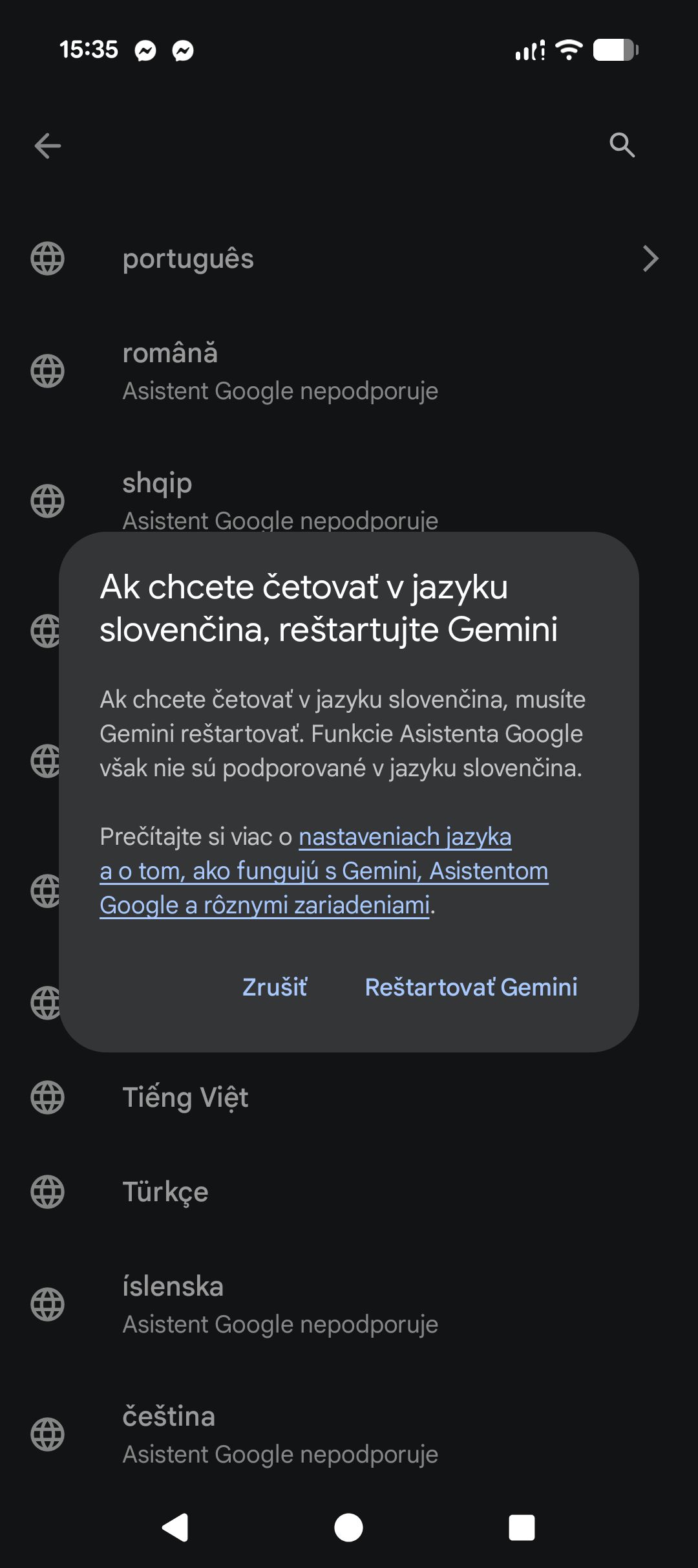 Gemini preberie jazyk zariadenia automaticky, no niekedy sa môže stať, že to neurobí celkom správne, prípadne namiesto slovenčiny zvolí angličtinu. Práve preto môže pôsobiť, že slovenčina nefunguje, aj keď je v skutočnosti dostupná.